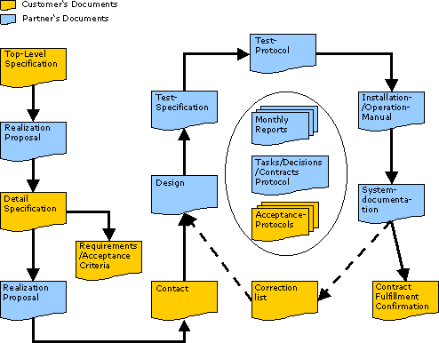 Specify the DesignWrite a Test SpecificationImplement the ComponentTest and write the Test ProtocolWrite the Installation-/Operation ManualWrite the System DocumentationExamine the system and write the Correction list (if necessary) |
